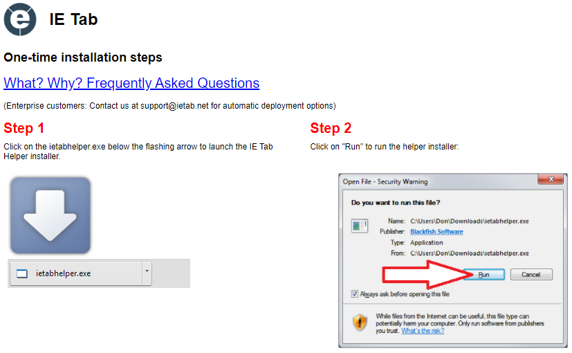 IE Tab을 위에 설명한 방식으로 눈에 잘보이는 곳에 꺼내두고 처음 클릭하면 당황스러운 사이트로 연결되면서 프로그램 하나를 다운 받으라고 안내가 뜰 것이다.