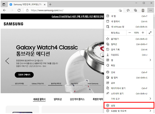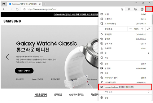 ※ Internet Explorer 만 지원하는 웹사이트의 경우는 Microsoft Edge에서 IE 모드를 설정하여 이용할 수 있습니다.