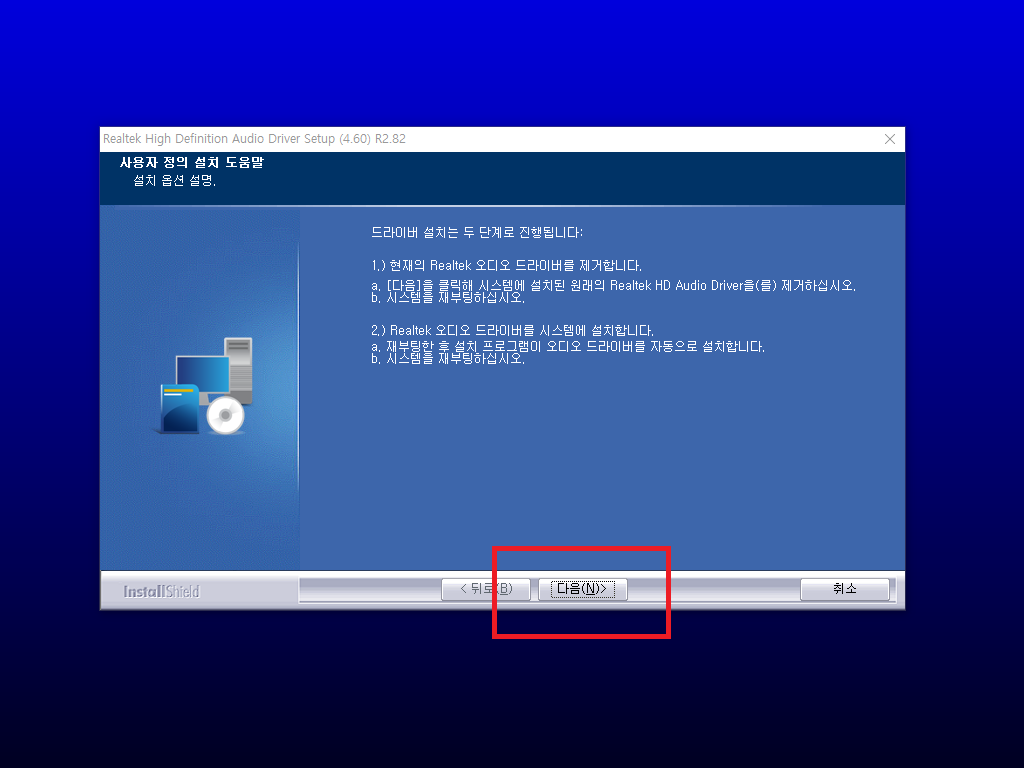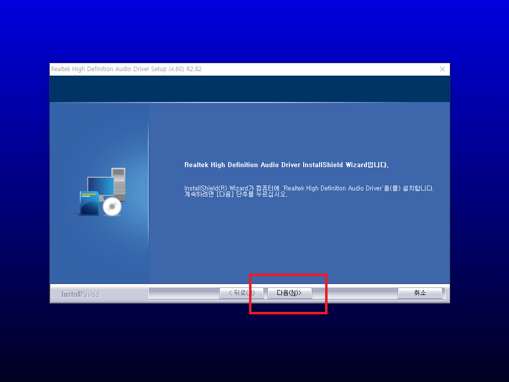 다운로드 받은 셋업 파일을 실행시키고 잠시 기다리면 설치 화면이 나타납니다. 컴퓨터에 리얼텍 사운드 드라이버 설치를 합니다. 다음 버튼을 클릭하여 주세요.