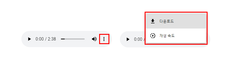 audio태그를 이용해서 음악을 넣으면 아래처럼 ... 버튼을 누르면 다운로드, 재생속도를 조절할 수 있는 메뉴가 뜨게 된다. 이 메뉴가 뜨지 않게하려면 태그 사이에 controlsList="noplaybackrate nodownload nofullscreen"을 추가하면 된다.