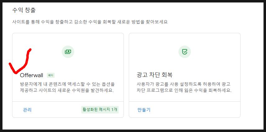 애드센스 오퍼월 광고 설정 방법